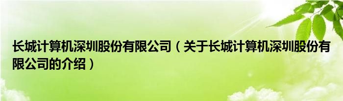 大家好,今天小乐来为大家解答以上的问题。长城计算机深圳股份有限公司,关于长城计算机深圳股份有限公司的介绍很多人还不知道,现在让我们一起来看看吧!
