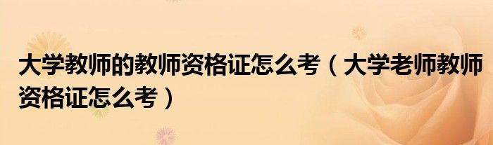 关于大学教师的教师资格证怎么考,大学老师教师资格证怎么考这个很多人还不知道,今天菲菲来为大家解答以上的问题,现在让我们一起来看看吧!