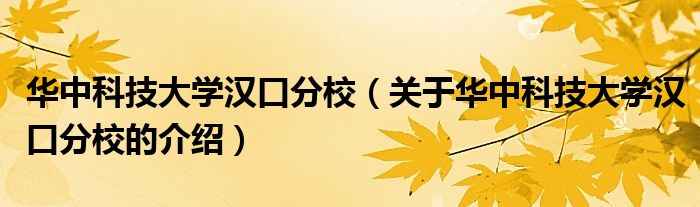 大家好,今天小乐来为大家解答以上的问题。华中科技大学汉口分校,关于华中科技大学汉口分校的介绍很多人还不知道,现在让我们一起来看看吧!