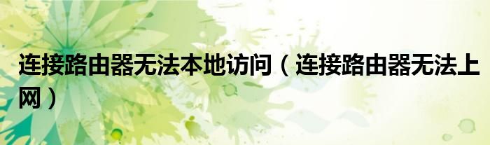 大家好,雨雨来为大家解答以上问题,连接路由器无法本地访问,连接路由器无法上网很多人还不知道,现在让我们一起来看看吧!