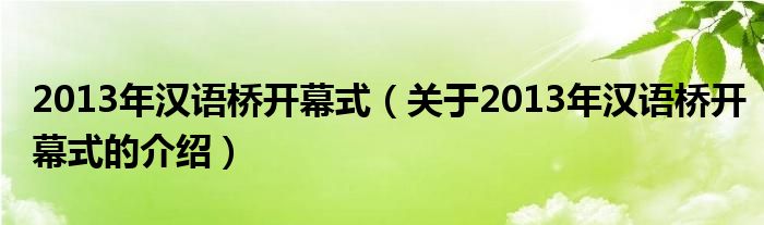 大家好,今天小乐来为大家解答以上的问题。2013年汉语桥开幕式,关于2013年汉语桥开幕式的介绍很多人还不知道,现在让我们一起来看看吧!