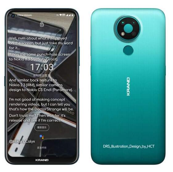 诺基亚3.4配备打孔显示屏和三摄相机设置