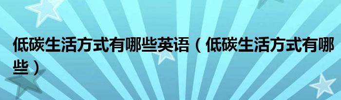 关于低碳生活方式有哪些英语,低碳生活方式有哪些这个很多人还不知道,今天菲菲来为大家解答以上的问题,现在让我们一起来看看吧!
