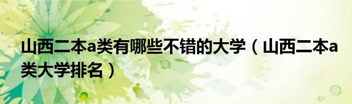 大家好,小晋来为大家解答以下问题,关于山西二本a类有哪些不错的大学,山西二本a类大学排名很多人还不知道,今天让我们一起来看看吧!