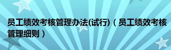关于员工绩效考核管理办法(试行),员工绩效考核管理细则这个很多人还不知道,今天菲菲来为大家解答以上的问题,现在让我们一起来看看吧!