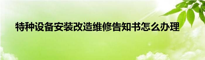 关于特种设备安装改造维修告知书怎么办理这个很多人还不知道,今天菲菲来为大家解答以上的问题,现在让我们一起来看看吧!