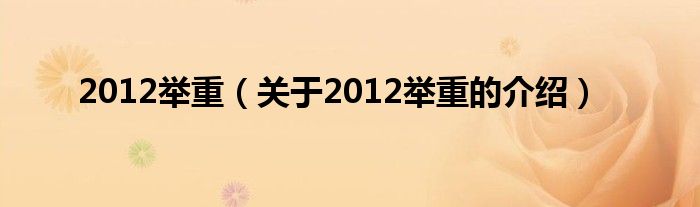 大家好,今天小乐来为大家解答以上的问题。2012举重,关于2012举重的介绍很多人还不知道,现在让我们一起来看看吧!