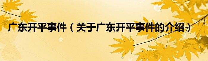 广东开平事件(关于广东开平事件的介绍)