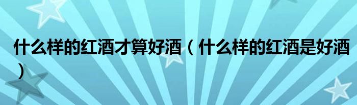 什么样的红酒才算好酒(什么样的红酒是好酒)