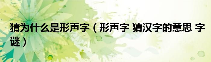 关于猜为什么是形声字,形声字 猜汉字的意思 字谜这个很多人还不知道,今天菲菲来为大家解答以上的问题,现在让我们一起来看看吧!