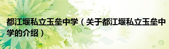 大家好,今天小乐来为大家解答以上的问题。都江堰私立玉垒中学,关于都江堰私立玉垒中学的介绍很多人还不知道,现在让我们一起来看看吧!