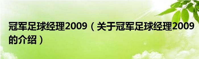 冠军足球经理2009(关于冠军足球经理2009的介绍)