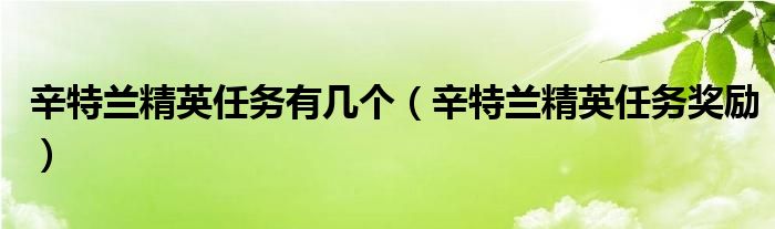 辛特兰精英任务有几个(辛特兰精英任务奖励)