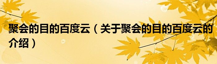 大家好,小都来为大家解答以上的问题。聚会的目的百度云,关于聚会的目的百度云的介绍很多人还不知道,现在让我们一起来看看吧!