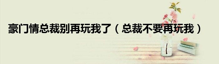 关于豪门情总裁别再玩我了,总裁不要再玩我这个很多人还不知道,今天菲菲来为大家解答以上的问题,现在让我们一起来看看吧!