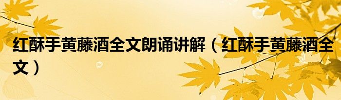 关于红酥手黄藤酒全文朗诵讲解,红酥手黄藤酒全文这个很多人还不知道,今天菲菲来为大家解答以上的问题,现在让我们一起来看看吧!