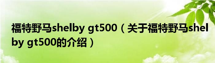 大家好,小都来为大家解答以上的问题。福特野马shelby gt500,关于福特野马shelby gt500的介绍很多人还不知道,现在让我们一起来看看吧!