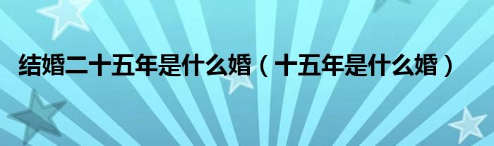 关于结婚二十五年是什么婚,十五年是什么婚这个很多人还不知道,今天菲菲来为大家解答以上的问题,现在让我们一起来看看吧!