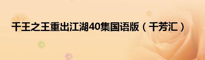 千王之王重出江湖40集国语版,千芳汇这个很多人还不知道,小飞来为大家解答以上的问题。现在让我们一起来看看吧!