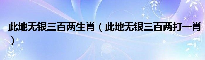 大家好,小晋来为大家解答以下问题,关于此地无银三百两生肖,此地无银三百两打一肖很多人还不知道,今天让我们一起来看看吧!