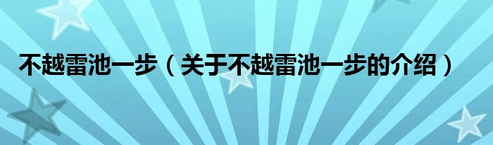 不越雷池一步(关于不越雷池一步的介绍)
