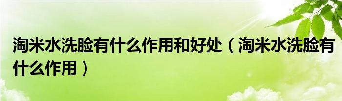 淘米水洗脸有什么作用和好处,淘米水洗脸有什么作用这个很多人还不知道,小飞来为大家解答以上的问题。现在让我们一起来看看吧!