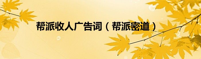 帮派收人广告词,帮派密道这个很多人还不知道,小飞来为大家解答以上的问题。现在让我们一起来看看吧!