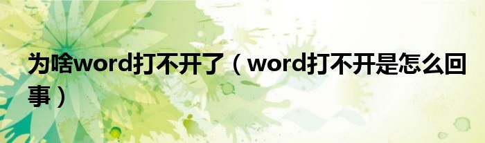 大家好,小飞来为大家解答以上问题,为啥word打不开了,word打不开是怎么回事很多人还不知道,现在让我们一起来看看吧!