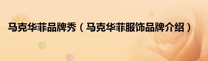 大家好,小源来为大家解答以上问题。马克华菲品牌秀,马克华菲服饰品牌介绍很多人还不知道,现在让我们一起来看看吧!