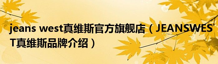大家好,小源来为大家解答以上问题。jeans west真维斯官方旗舰店,JEANSWEST真维斯品牌介绍很多人还不知道,现在让我们一起来看看吧!