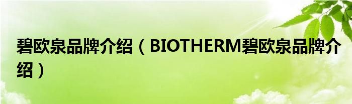 大家好,小源来为大家解答以上问题。碧欧泉品牌介绍,BIOTHERM碧欧泉品牌介绍很多人还不知道,现在让我们一起来看看吧!