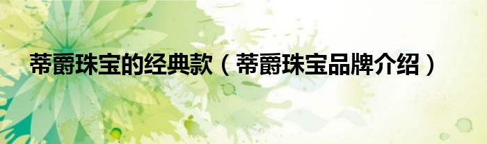 大家好,小源来为大家解答以上问题。蒂爵珠宝的经典款,蒂爵珠宝品牌介绍很多人还不知道,现在让我们一起来看看吧!