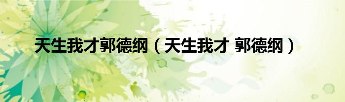 天生我才郭德纲,天生我才 郭德纲这个很多人还不知道,小飞来为大家解答以上的问题。现在让我们一起来看看吧!