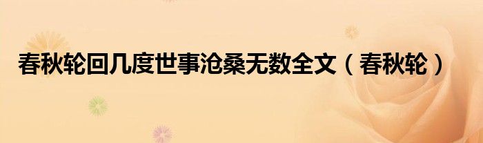 大家好,小飞来为大家解答以上的问题。春秋轮回几度世事沧桑无数全文,春秋轮这个很多人还不知道,现在让我们一起来看看吧!
