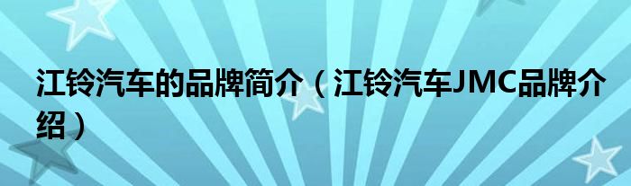 大家好,小源来为大家解答以上问题。江铃汽车的品牌简介,江铃汽车JMC品牌介绍很多人还不知道,现在让我们一起来看看吧!