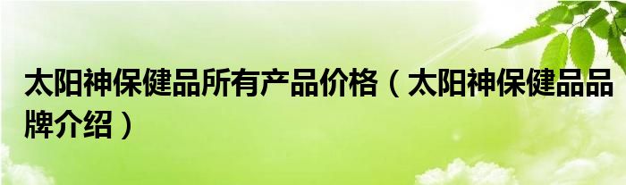 大家好,小源来为大家解答以上问题。太阳神保健品所有产品价格,太阳神保健品品牌介绍很多人还不知道,现在让我们一起来看看吧!