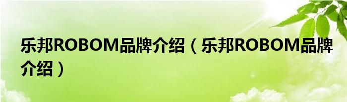 大家好,小源来为大家解答以上问题。乐邦ROBOM品牌介绍,乐邦ROBOM品牌介绍很多人还不知道,现在让我们一起来看看吧!