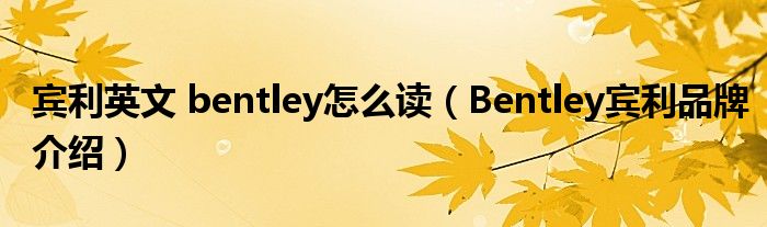 大家好,小源来为大家解答以上问题。宾利英文 bentley怎么读,Bentley宾利品牌介绍很多人还不知道,现在让我们一起来看看吧!