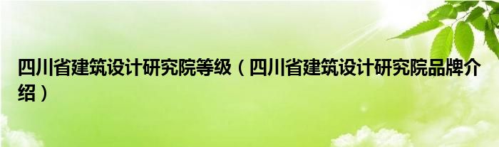 大家好,小源来为大家解答以上问题。四川省建筑设计研究院等级,四川省建筑设计研究院品牌介绍很多人还不知道,现在让我们一起来看看吧!