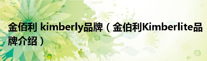 大家好,小源来为大家解答以上问题。金佰利 kimberly品牌,金伯利Kimberlite品牌介绍很多人还不知道,现在让我们一起来看看吧!