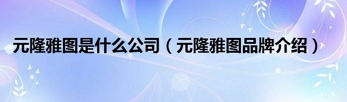 大家好,小源来为大家解答以上问题。元隆雅图是什么公司,元隆雅图品牌介绍很多人还不知道,现在让我们一起来看看吧!