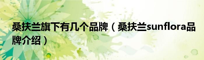 大家好,小源来为大家解答以上问题。桑扶兰旗下有几个品牌,桑扶兰sunflora品牌介绍很多人还不知道,现在让我们一起来看看吧!