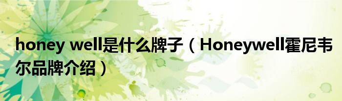 大家好,小源来为大家解答以上问题。honey well是什么牌子,Honeywell霍尼韦尔品牌介绍很多人还不知道,现在让我们一起来看看吧!