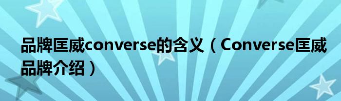 大家好,小源来为大家解答以上问题。品牌匡威converse的含义,Converse匡威品牌介绍很多人还不知道,现在让我们一起来看看吧!