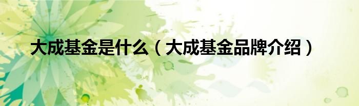 大家好,小源来为大家解答以上问题。大成基金是什么,大成基金品牌介绍很多人还不知道,现在让我们一起来看看吧!