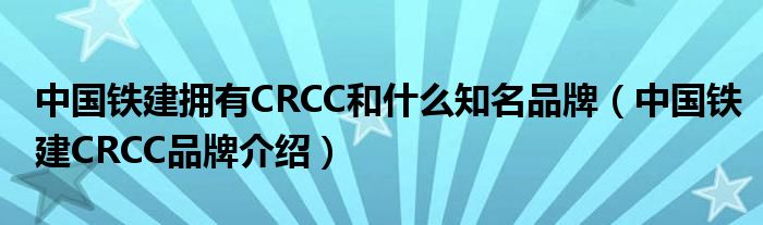 大家好,小源来为大家解答以上问题。中国铁建拥有CRCC和什么知名品牌,中国铁建CRCC品牌介绍很多人还不知道,现在让我们一起来看看吧!