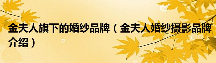 大家好,小源来为大家解答以上问题。金夫人旗下的婚纱品牌,金夫人婚纱摄影品牌介绍很多人还不知道,现在让我们一起来看看吧!