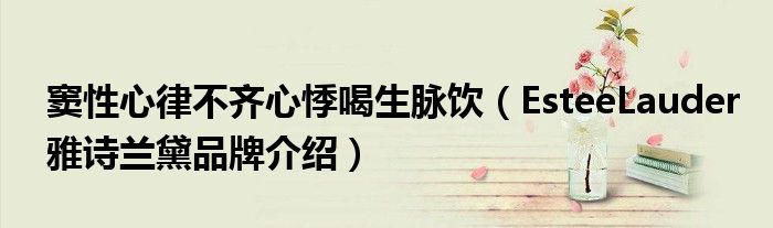 大家好,小源来为大家解答以上问题。窦性心律不齐心悸喝生脉饮,EsteeLauder雅诗兰黛品牌介绍很多人还不知道,现在让我们一起来看看吧!