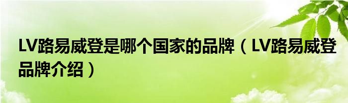 大家好,小源来为大家解答以上问题。LV路易威登是哪个国家的品牌,LV路易威登品牌介绍很多人还不知道,现在让我们一起来看看吧!