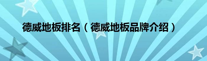 大家好,小源来为大家解答以上问题。德威地板排名,德威地板品牌介绍很多人还不知道,现在让我们一起来看看吧!